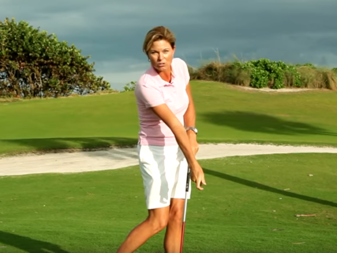 If your iron shots are flying low and short, it might be because you are not using the leverage of your body to hit down on the ball. In this video Aimee Chon demonstrates how we can more effectively use our body, so that our irons hit down on the ball with the strength of