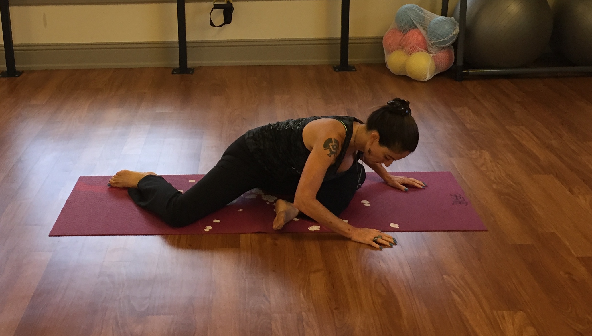 I am a big believer in the benefits of improved flexibility, and often remind my students that it is never about what you are doing today, it is about what you will accomplish with time and practice. I always include a total body stretch into each class format. Our stretching segment includes hamstrings, shoulders, back, gluts, and piriformis, oblique’s, calf’s and quadriceps. A good example of some of these stretching postures, taken from yoga, would be downward facing dog, pigeon, knot posture and child’s pose. I like to incorporate Pilate’s on the ball stretches, such as hip openers, and back stretches to decompress the spine.